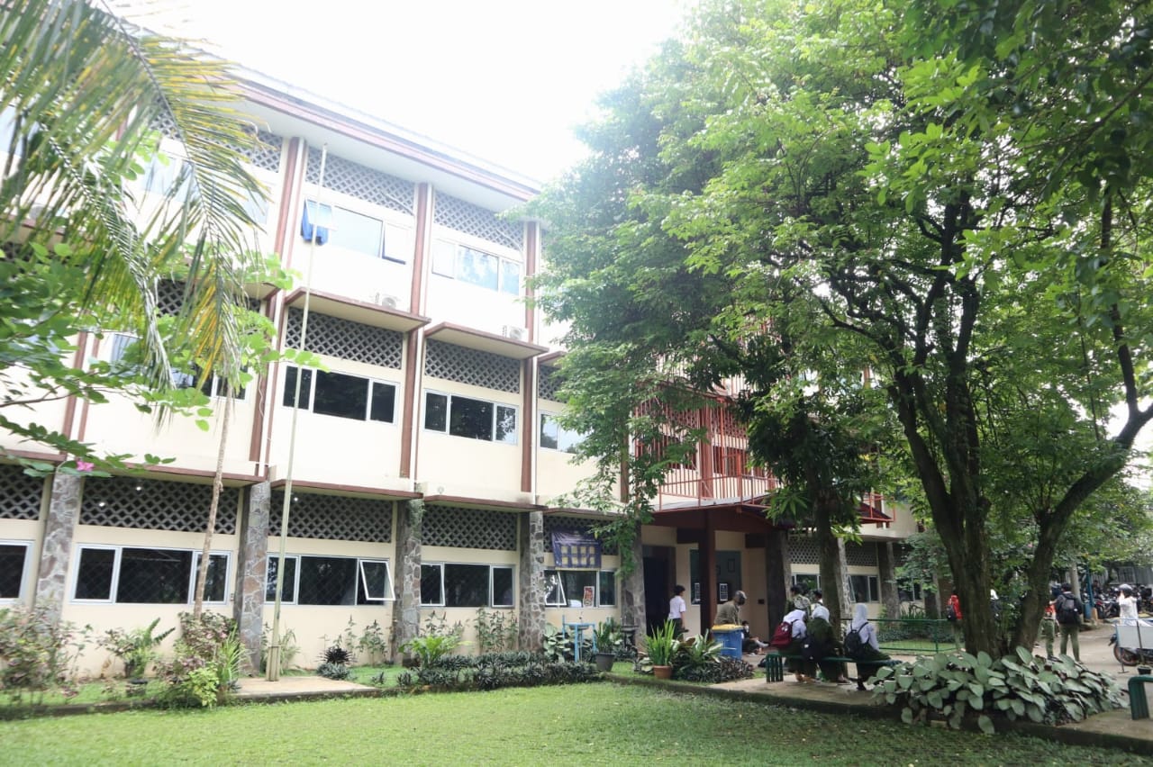 Halaman depan SMK Dewantara, memiliki banyak pepohonan yang memberikan kesan sejuk, alami.